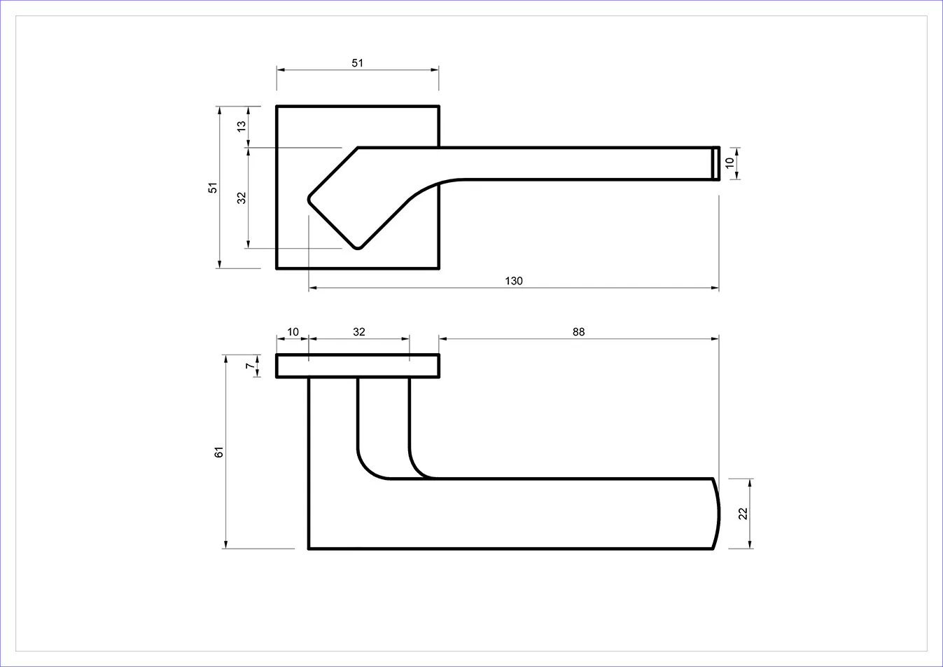 - Typ: komplet klamek na rozecie kwadratowej, bez rozety dolnej