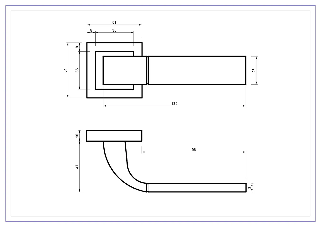 - Typ: komplet klamek na rozecie kwadratowej, bez rozety dolnej