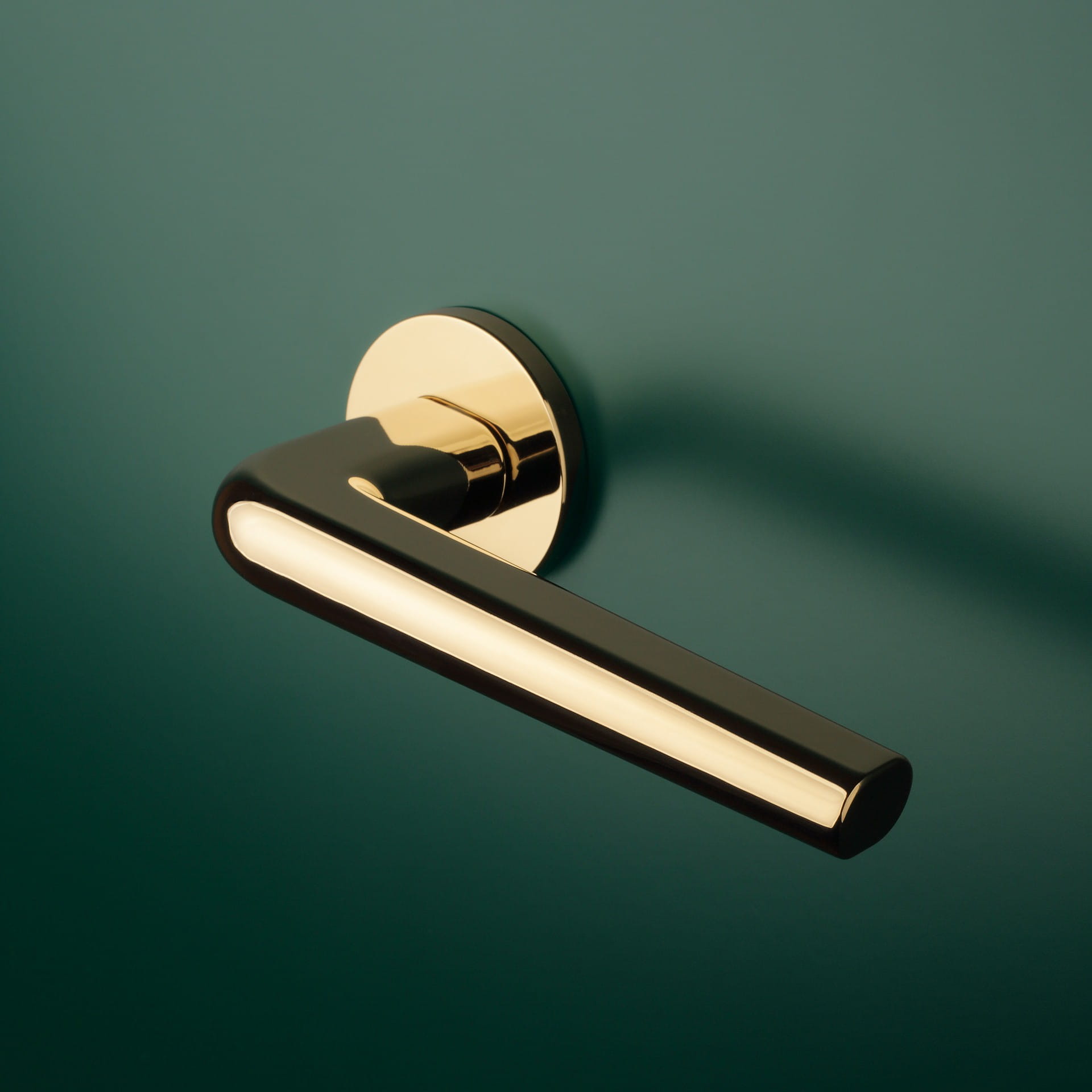 Klamki Aprile FUNKIA na rozecie slim 7mm, złoty polerowany