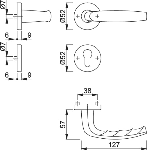 - Konstrukcja: rączki klamek niezespolone z szyldem, uniwersalne sprężyny cofające lewo/prawostronnie, łożysko niewymagające konserwacji