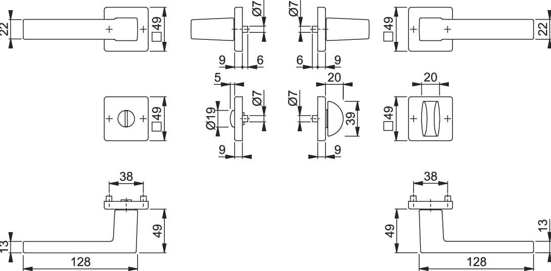 - Konstrukcja: rączki klamek niezespolone z szyldem, uniwersalne sprężyny cofające lewo/prawostronnie, łożysko niewymagające konserwacji