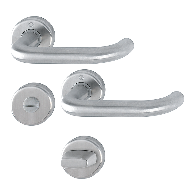 Klamki HOPPE Baden na okrągłej rozecie F69 Stal szlachetna matowa