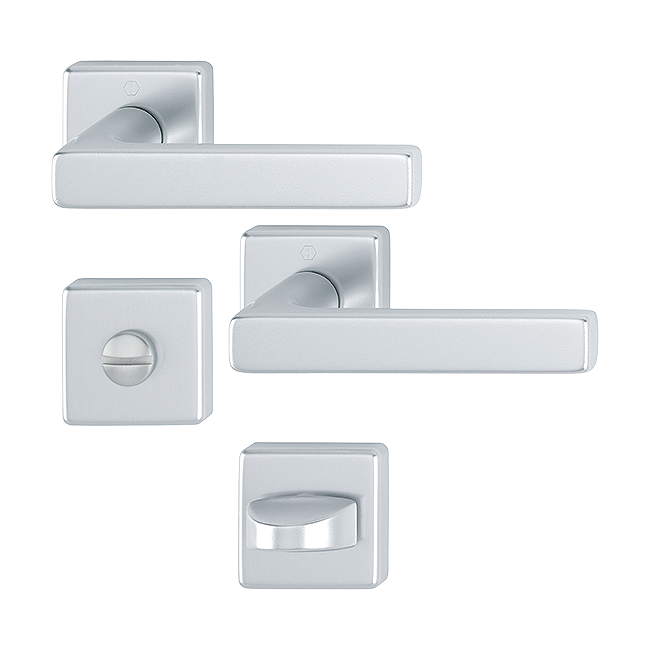 Klamki HOPPE Dallas na kwadratowej rozecie, F1 Aluminium naturalne