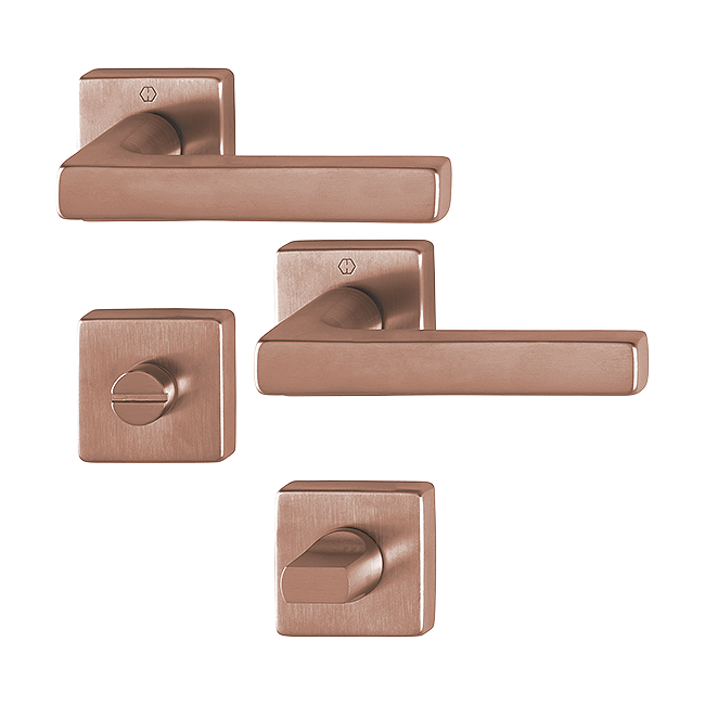 Klamki HOPPE Dallas na kwadratowej rozecie, R84-1-R miedź satynowana Resista®