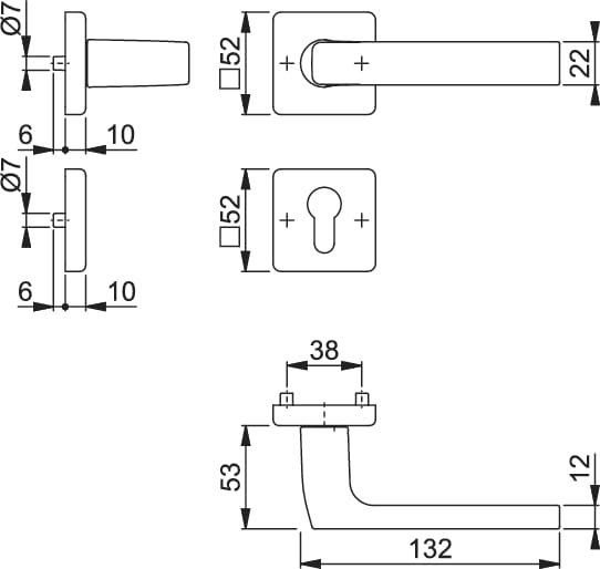 - Konstrukcja: rączki klamek niezespolone z szyldem, uniwersalne sprężyny cofające lewa/prawa, łożysko nie wymagające konserwacji