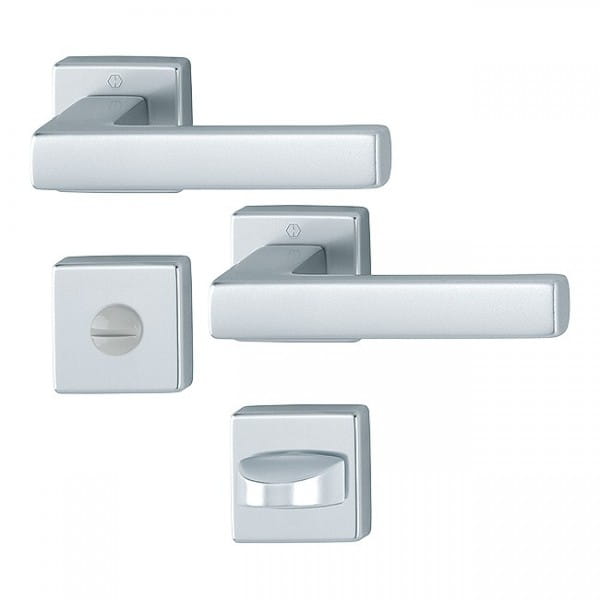 Klamki HOPPE Toulon na kwadratowej rozecie, F1 Aluminium naturalne