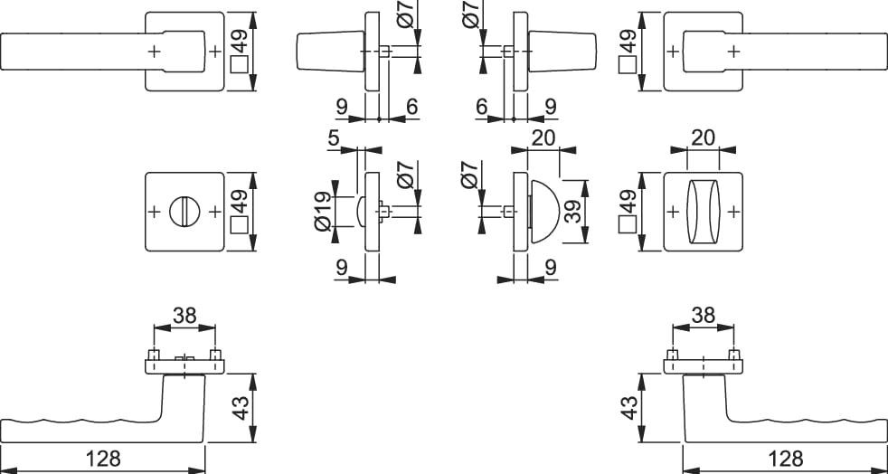 - Konstrukcja: rączki klamek niezespolone z szyldem, uniwersalne sprężyny cofające lewo/prawostronnie, łożysko niewymagające konserwacji