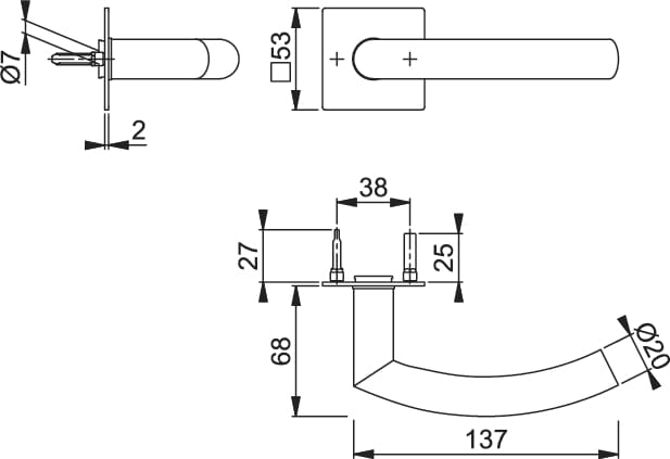W tej ofercie kupisz komplet klamek HOPPE przystosowany do drzwi wewnętrznych o grubości 37-42mm. W zestawie znajdują się wszystkie akcesoria niezbędne do montażu klamki do drzwi.