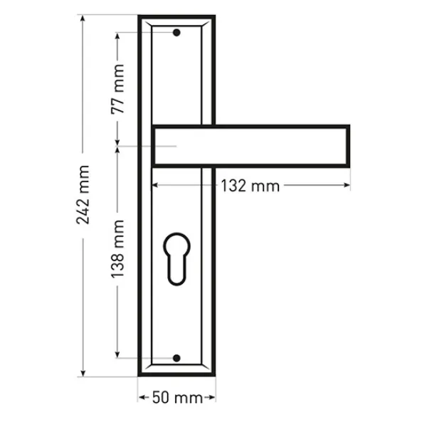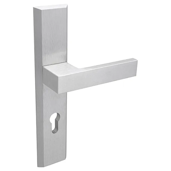 W tej ofercie kupisz komplet klamek na długim szyldzie do drzwi zewnętrznych: