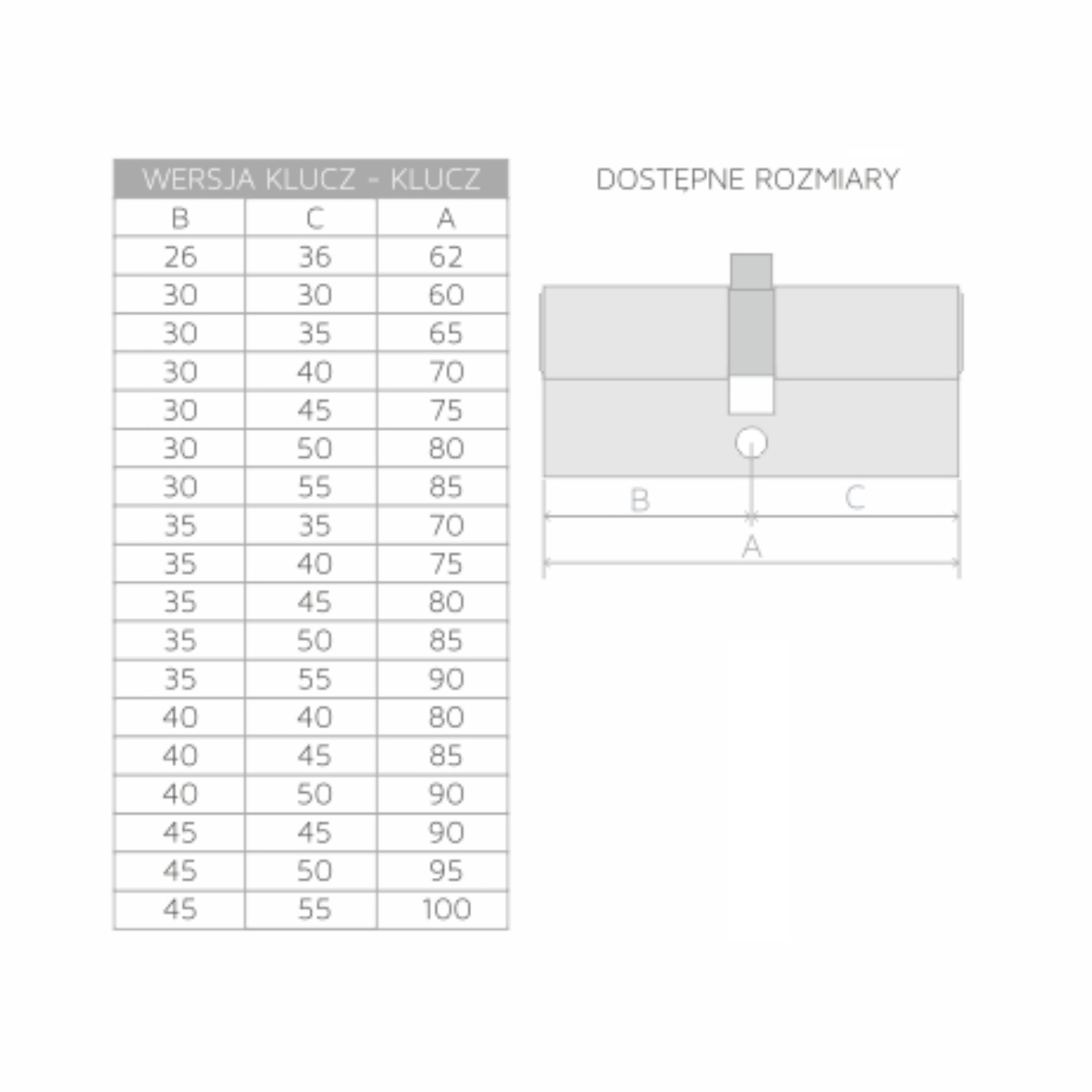 Komplet wkładek w systemie jednego klucza: