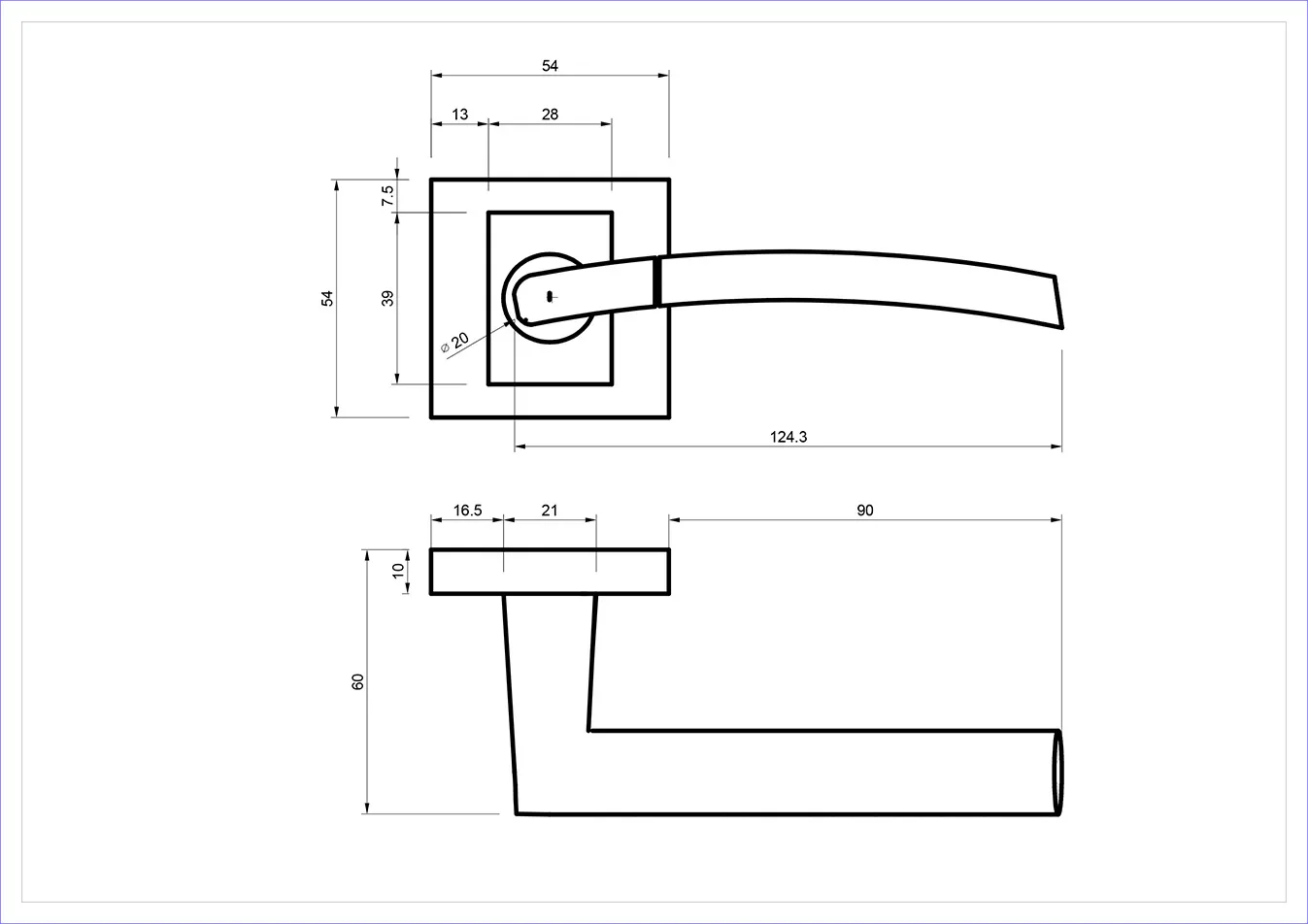 - Typ: komplet klamek na rozecie kwadratowej, bez rozety dolnej