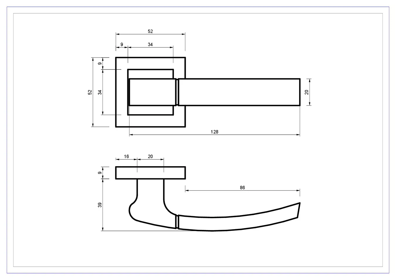 - Typ: komplet klamek na rozecie kwadratowej, bez rozety dolnej