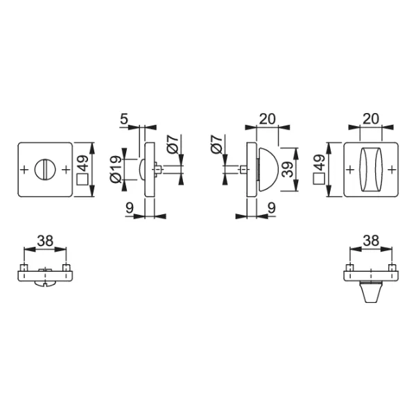 - Otwór: wkładka pod klucz/ wkładkę/ zamek WC