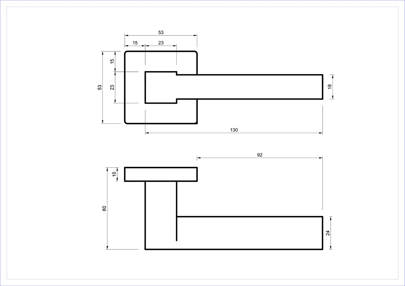 - Typ: komplet klamek na rozecie kwadratowej, bez rozety dolnej
