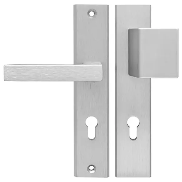 - Typ: komplet klamek na długim szyldzie (pochwyt-klamka)